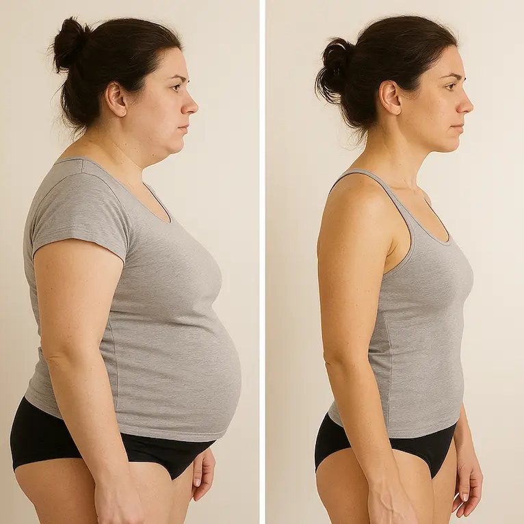 🔻 Uma barriga que ficou flácida, caída, inchada…